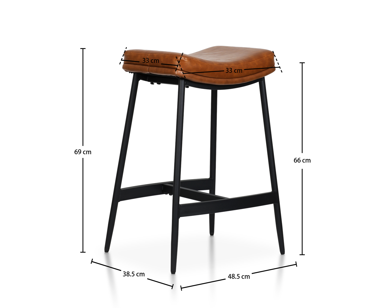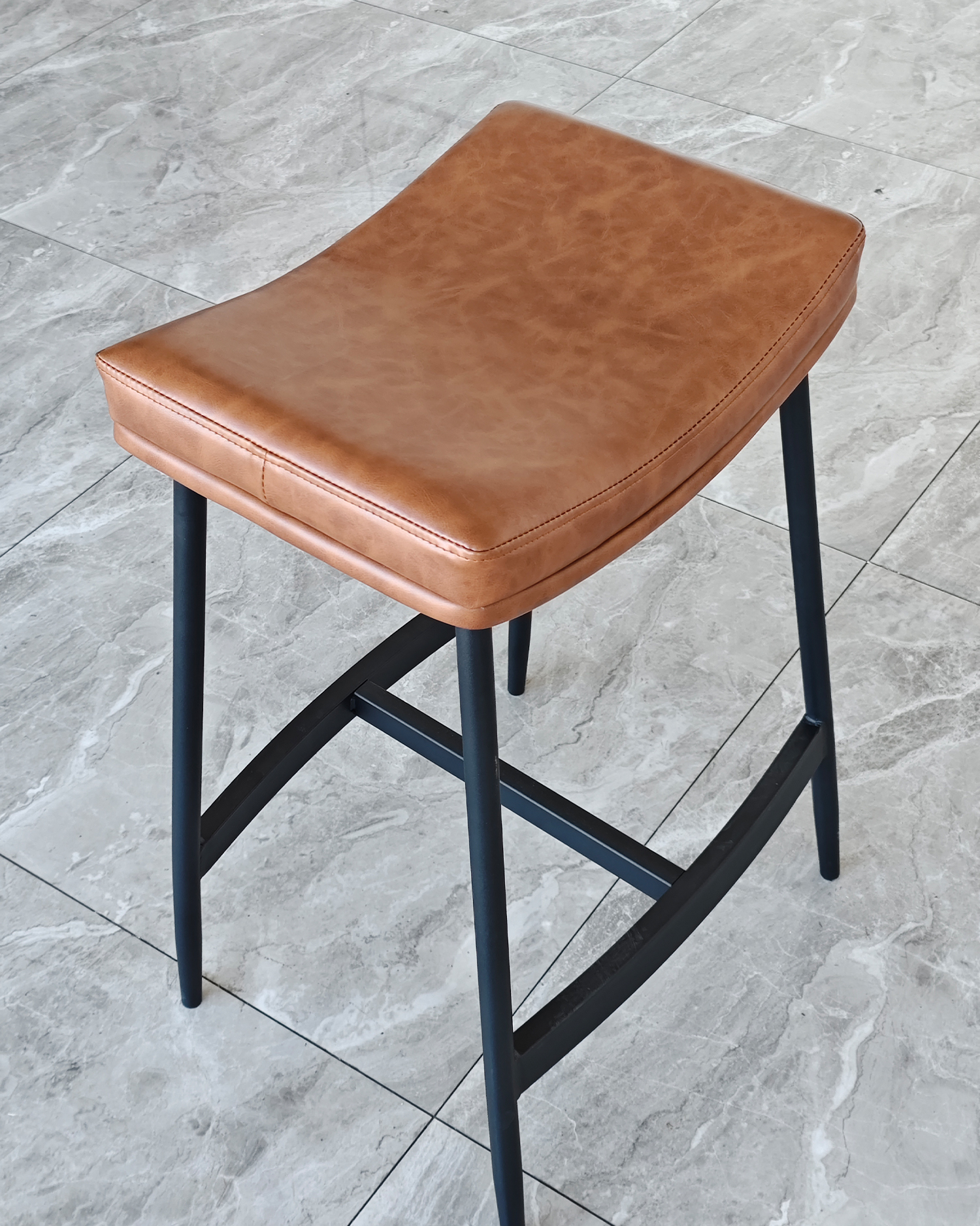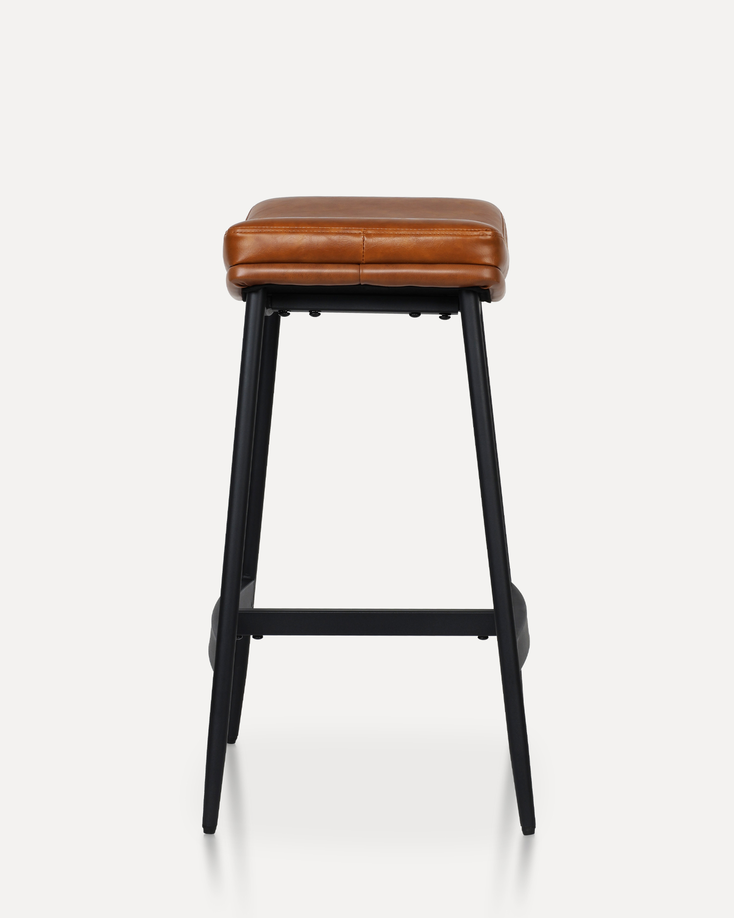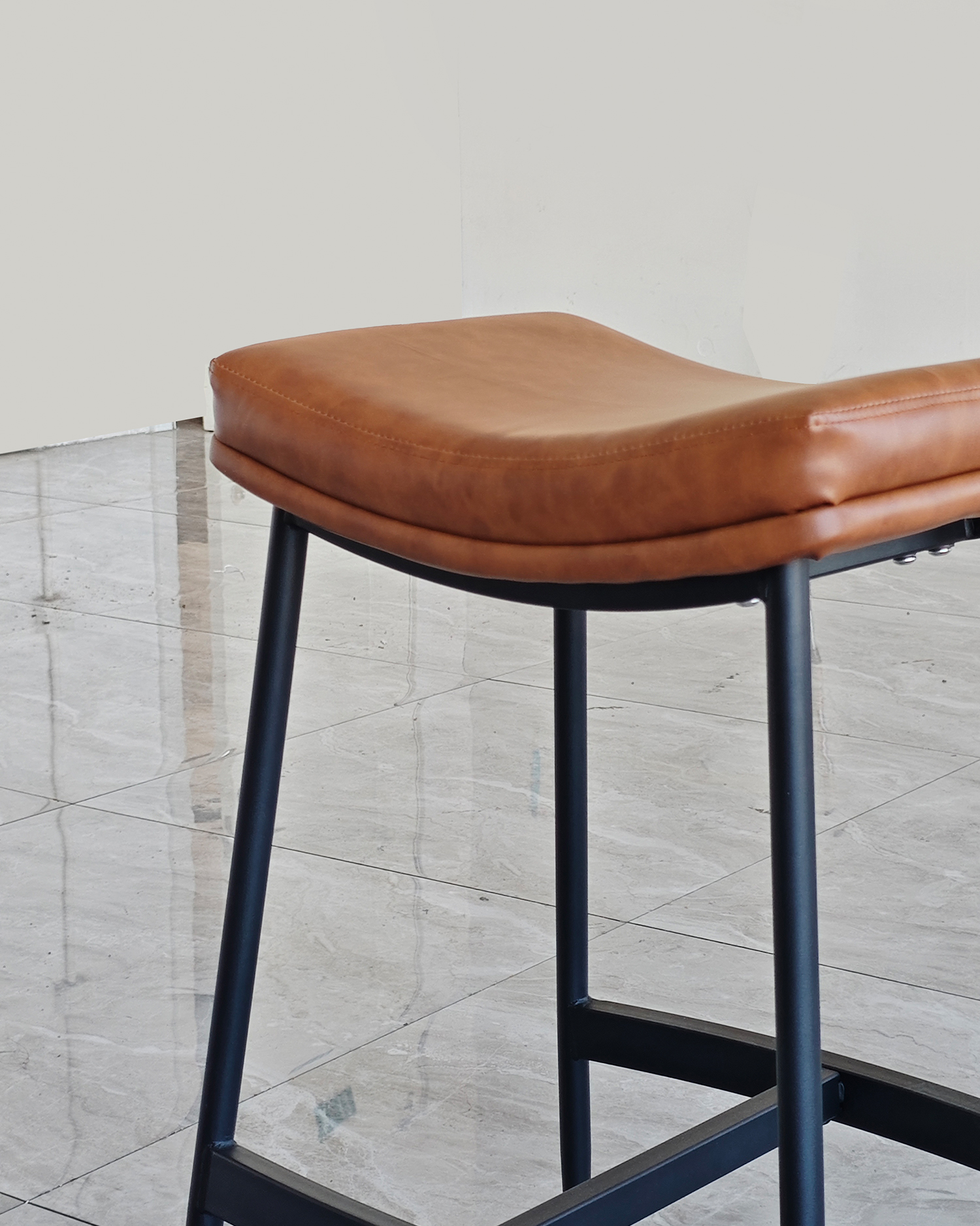 • Ukorijenjena u industrijskom šik i bezvremenskom kožnom obliku, ova stolica kanalizira energiju vintage barova i modernih potkrovlja. Njegovo sjedalo u obliku sedla evocira udobnost dobro istrošene kožne fotelje.