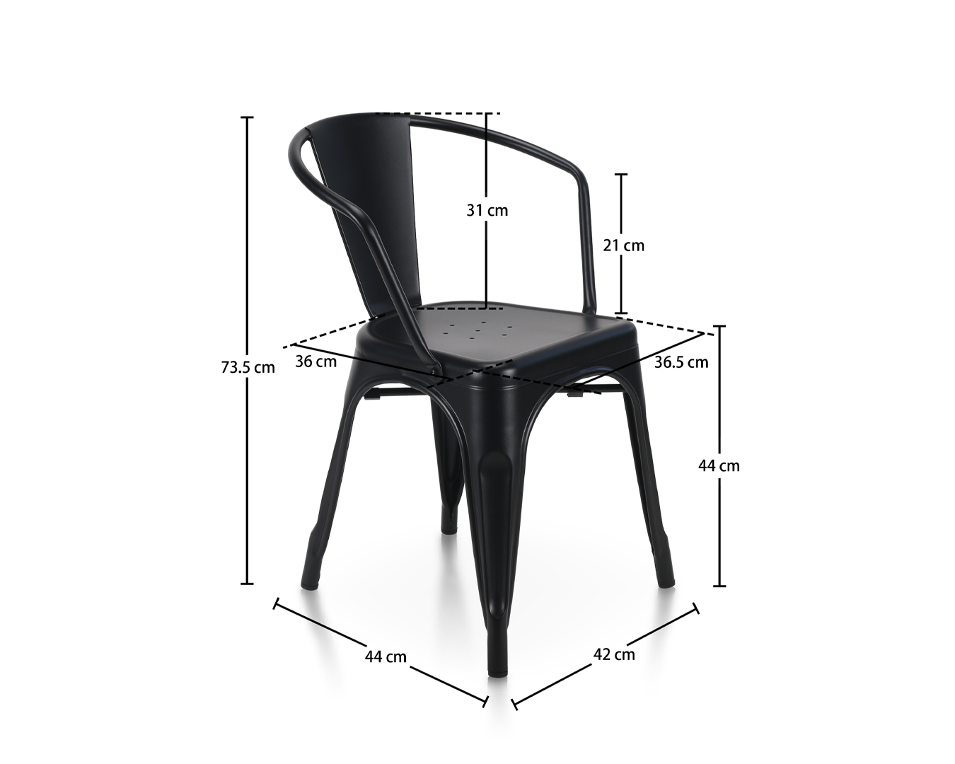 • Ova stolica je remek-djelo industrijskog dizajna, izrađenog od visokokvalitetnog željeza i završeno u elegantnoj crnoj boji koja zrači elegancijom. Pozornost na detalje u njegovoj konstrukciji vidljiva je u svakom aspektu, od preciznog zavarivanja do glatkih kontura okvira.