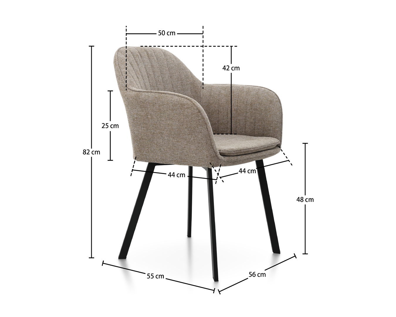 • Njegov black metal okvir ne samo da nudi snažnu stabilnost, već i lijepo nadopunjuje bogatu smeđe presvlake. Dizajn stolice uključuje zakrivljeni naslon i podstavljeno sjedalo, osiguravajući maksimalnu udobnost za sve korisnike.