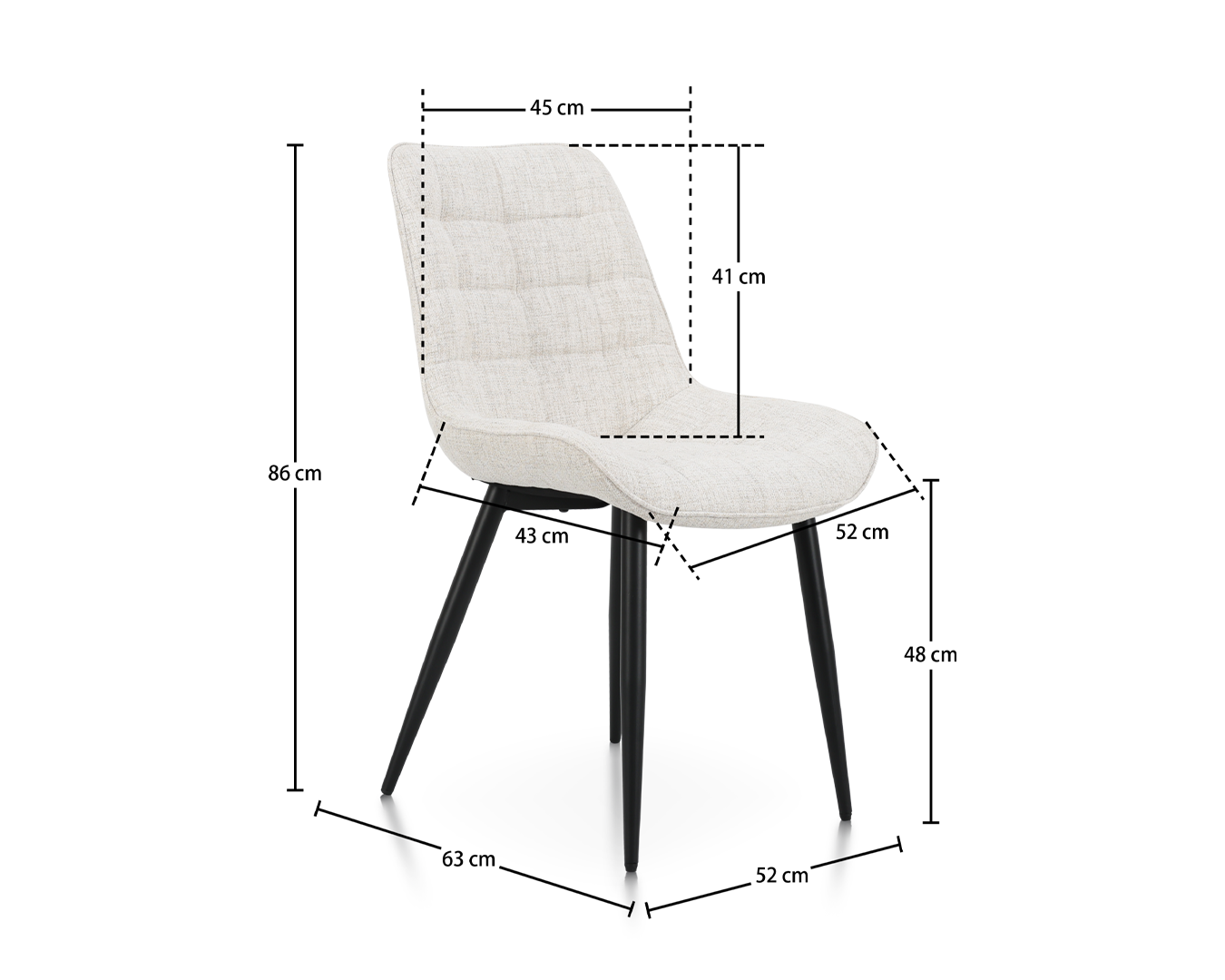 • Tapecirano sjedalo: Sjedalo je tapecirano u visokokvalitetnoj, teksturiranoj tkanini koja pruža meko i ugodno iskustvo sjedenja. Neutralna bež boja nadopunjuje bilo koji dekor blagovaonice.