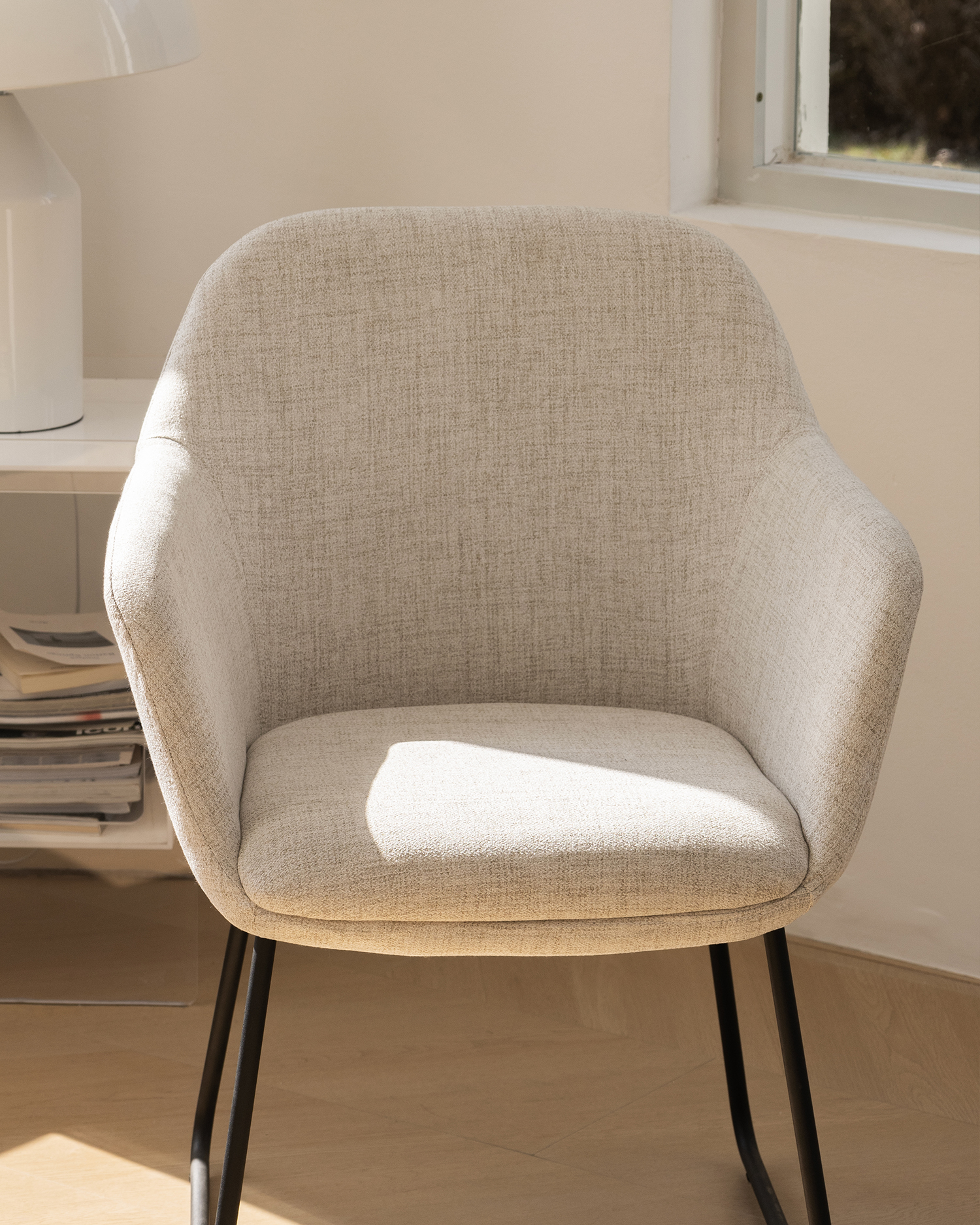• Njegova elegantna bež presvlaka osigurava maksimalnu udobnost, dok zakrivljeni naslon za zakrivljenost podržava vašu kralježnicu bez napora. Black metalne noge stolice su elegantne i izdržljive, osiguravajući stabilnost i dugovječnost.