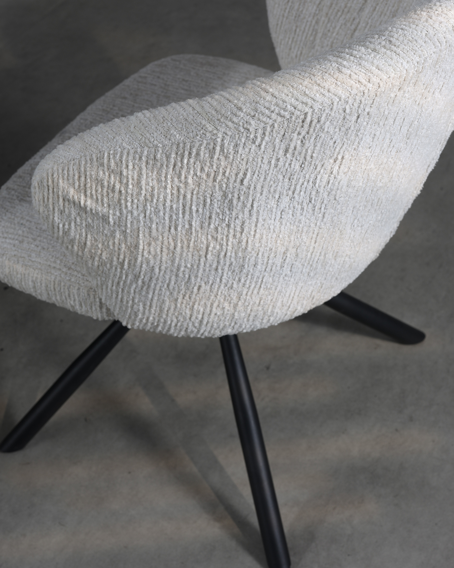 • Dizajniran s fokusom i na estetiku i ergonomiju, ima se krem-teksturiranom teksturiranom presvlakom koja dodaje dodir sofisticiranosti u bilo koju sobu. Zakrivljeni naslon stolice i dovoljno prostora za sjedenje pružaju izuzetnu udobnost, dok njegove crne metalne noge nude snažnu podršku i moderan njuh.
