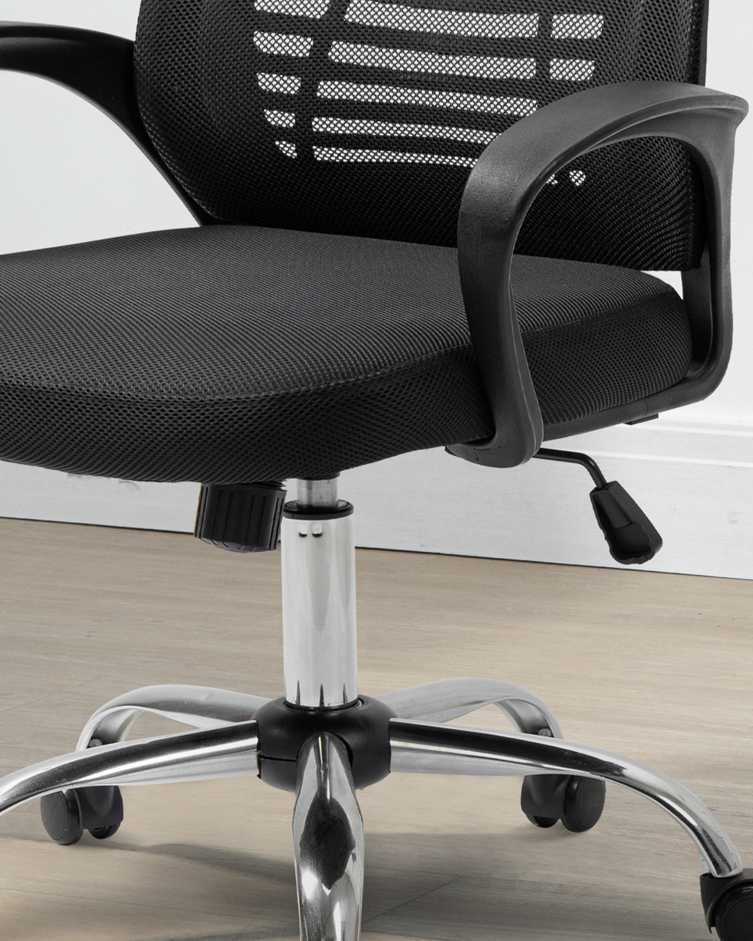 • Uz prozračnu tkaninu leđa i sjedalo, ostat ćete ugodno tijekom dugih sati rada. Podesiva visina i čvrsta konstrukcija osigurava da možete pronaći svoj idealan sjedeći položaj uz održavanje podrške i udobnosti.