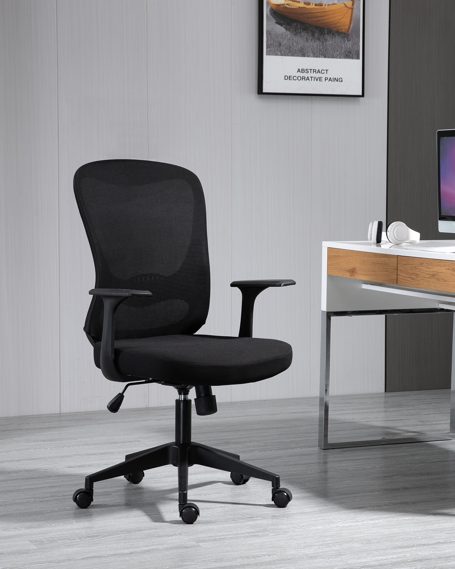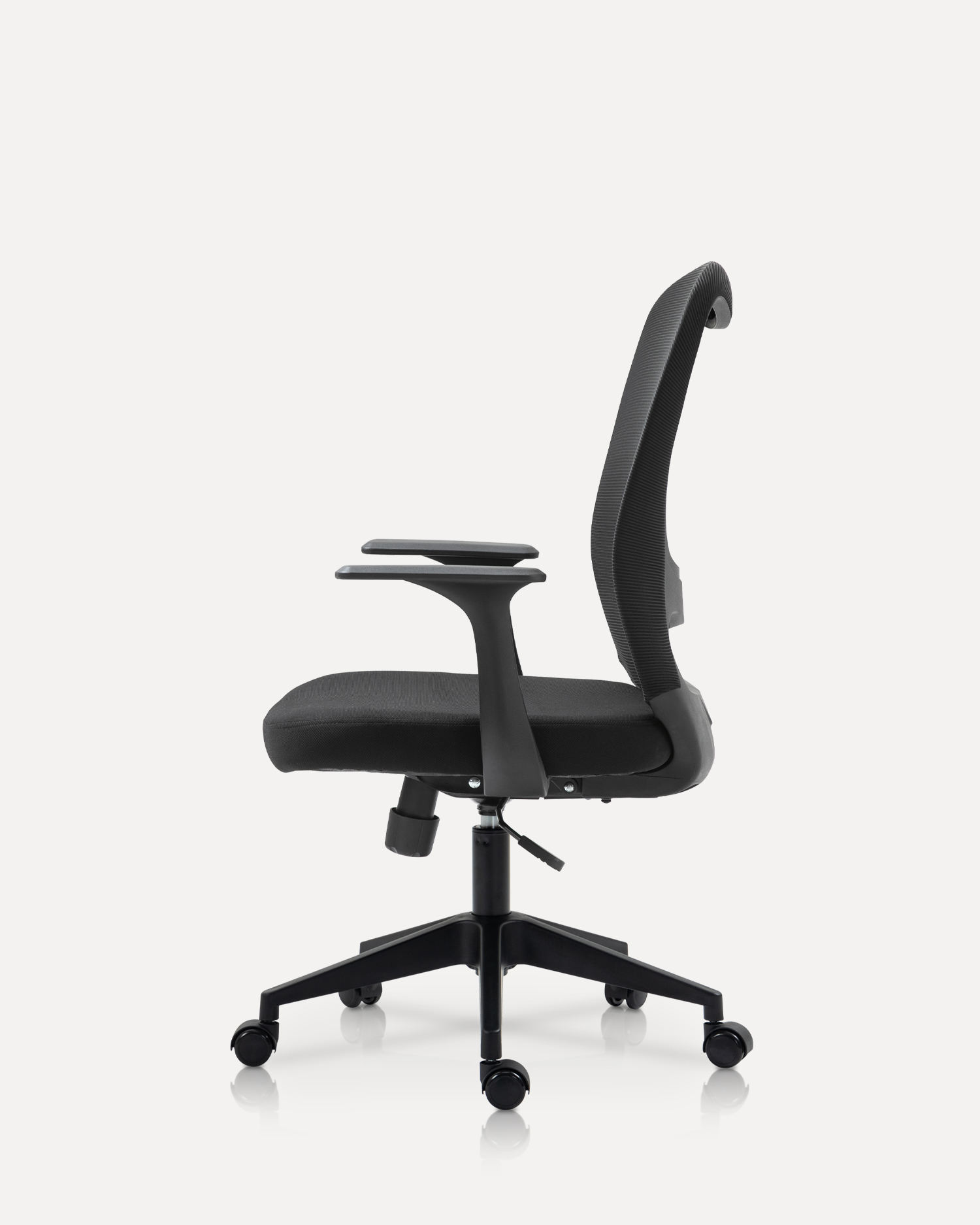• Ergonomija je u središtu dizajna ove stolice. Podesivi mehanizam visine omogućuje vam prilagođavanje stolice kako bi odgovarao vašim specifičnim potrebama, osiguravajući da su vam stopala ravna na zemlji, a koljena su pod kutom od 90 stupnjeva. Stihovi za ruke mogu se prilagoditi kako bi pružili savršenu potporu za ruke, smanjujući opterećenje na ramenima i vratu. Lumbalna potpora ugrađena u naslon promiče pravilno držanje, povećavajući ukupnu udobnost i produktivnost.