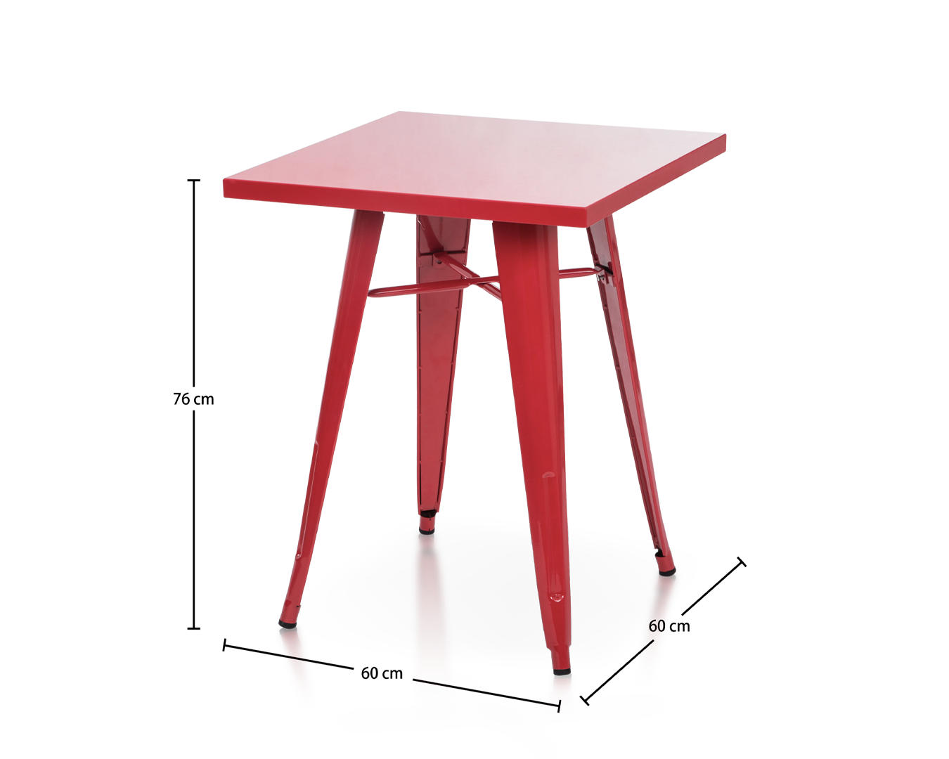 • Otkrijte svestranost i izdržljivost ovog zapanjujućeg stola od crvenog željeza. Dizajniran i s stilom i praktičnošću na umu, stol sadrži kvadratni metalni vrh koji pruža dovoljno prostora za razne aktivnosti.