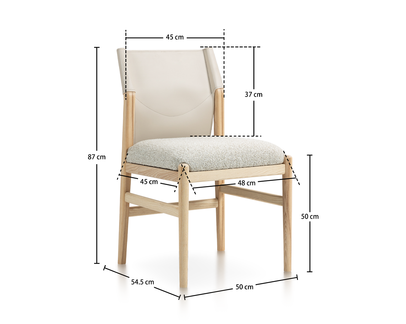 • Ova ležerna stolica od pepela s kožnim sjedalom sedla savršeno je utjelovljenje bezvremenske elegancije i neusporedive udobnosti.