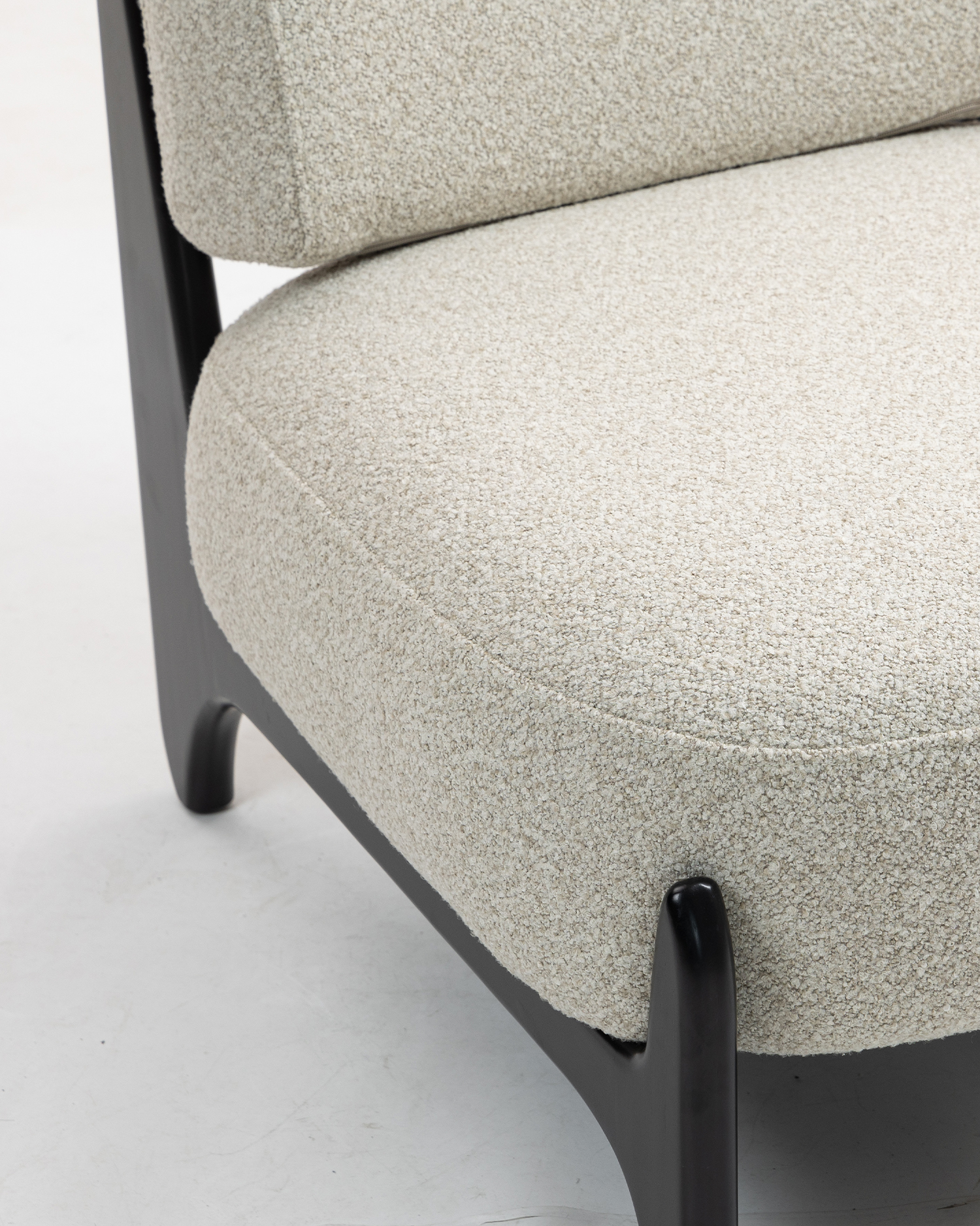 • Okvir stolice, napravljen od vrhunskog gumenog drveta, ima glatku crnu završnu obradu koja odiše sofisticiranosti i izdržljivošću. Velikodušno jastučno sjedalo i naslon zaleđe su tapecirani u meku, teksturiranu tkaninu koja pruža neusporedivu udobnost i podršku. Jedinstveni zakrivljeni naslon za naslonje i nasloni za ruke nude stilski, ali funkcionalni dizajn, omogućujući vam da se odmarate i opustite u vrhunskoj udobnosti.