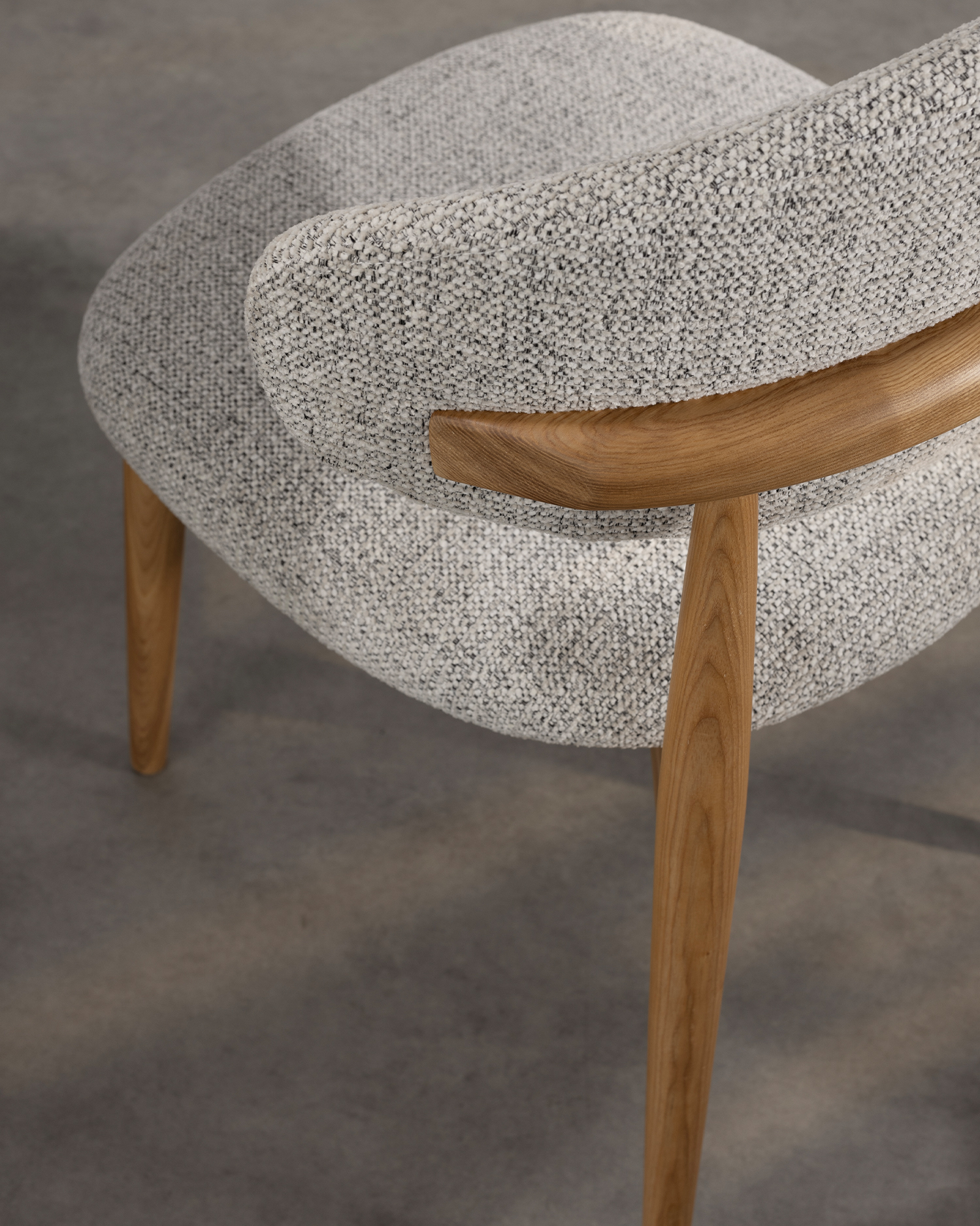 • Izrađena od prirodnog pepela, svaka stolica ima jedinstvene uzorke zrna i varijacije boja, dodajući svoj karakter i šarm, istovremeno tapecirano sjedalo s mekom tkaninom i spužvom nudi ugodno iskustvo sjedenja.
