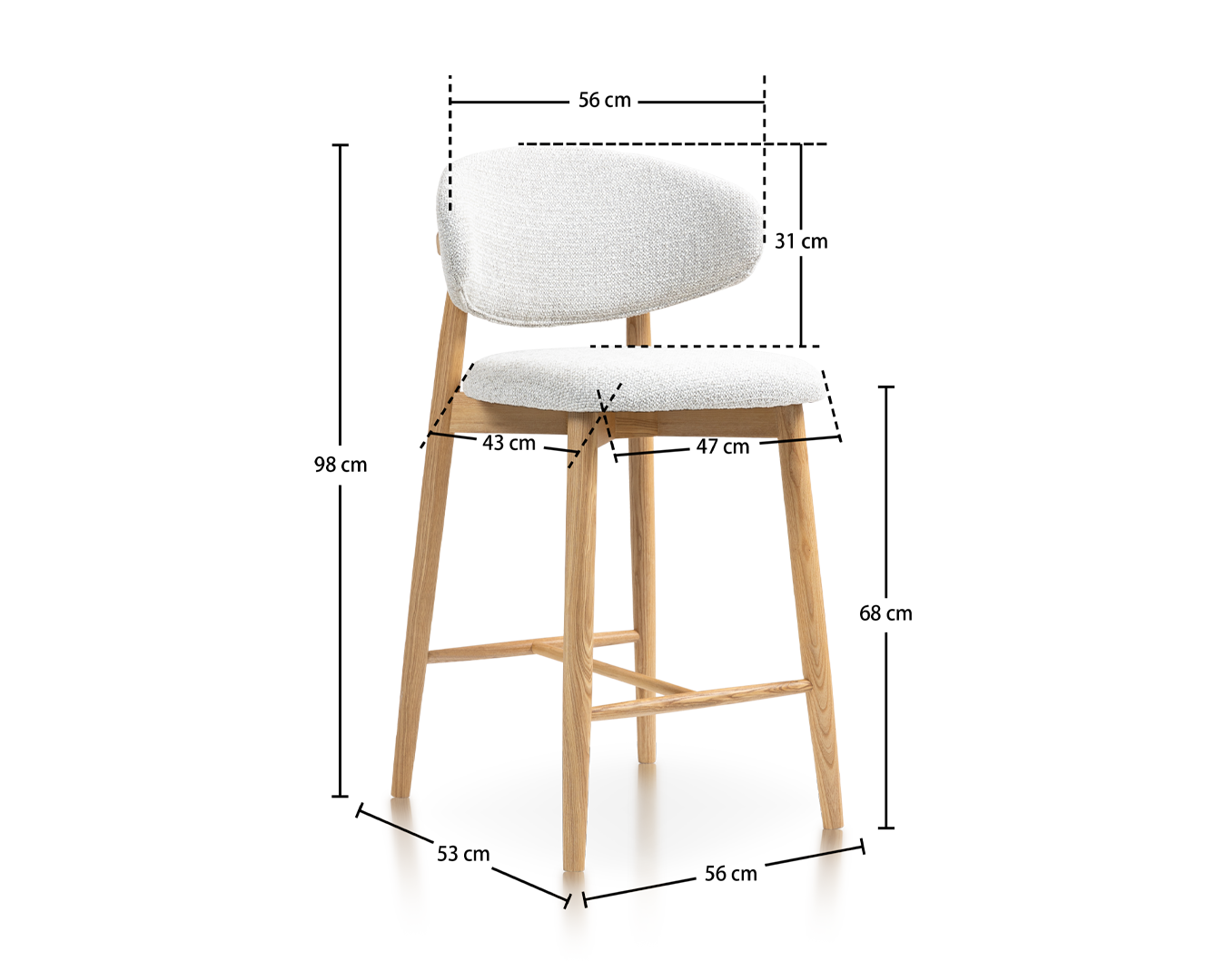 • Izrađen od izdržljivog drveta pepela i dizajniran za savršeno spajanje s šalterima ili kuhinjskim otocima. Čvrsti okvir i ergonomsko sjedalo osiguravaju dugotrajnu podršku, dok ih elegantni dizajn odlično odgovara suvremenim ili rustikalnim interijerima.